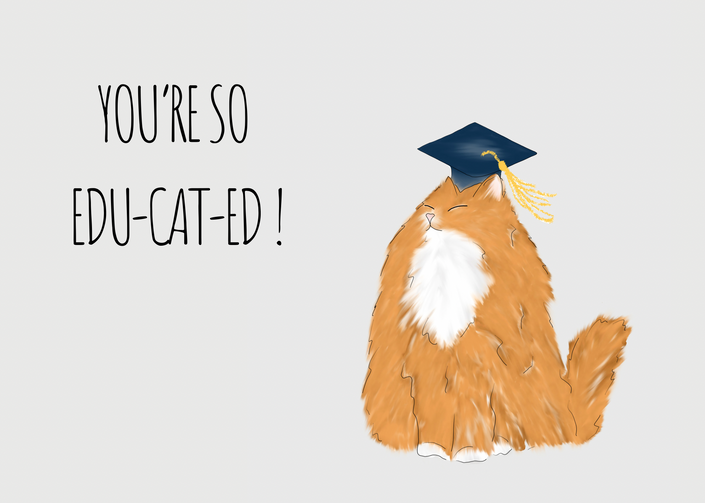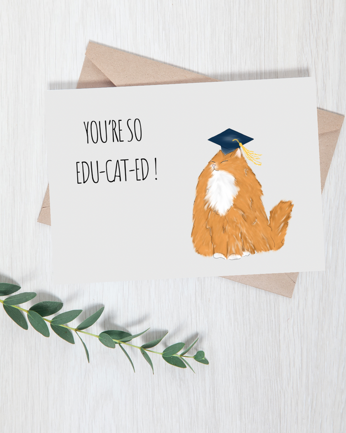 "So Edu-cat-ed" Orange Cat Graduation Card | 4.25x5.5" Card w/envelope