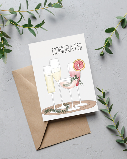 "Congrats!" Wedding/Celebration Card | 4.25x5.5" Card w/envelope