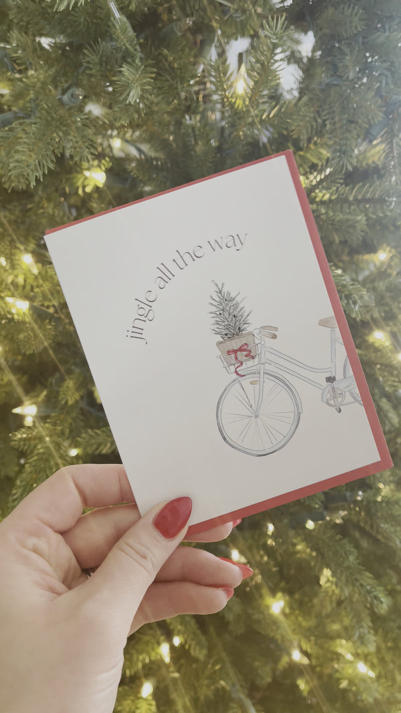 Feel the beach breeze with this beautiful Coastal Bike Holiday Card! This 4.25" x 5.5" card in watercolour is perfect for sending season's greetings. Printed on premium paper, it will make this Christmas by the sea even more special. Hop on the bike and spread some cheer!