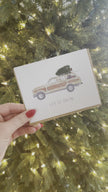 Send your season's greetings in the most jolly way with this vintage-inspired Let it Snow Holiday Card! Featuring a classic Jeep Wagoneer rolling coastally with a Christmas tree in the trunk, this 4.25" x 5.5" card is truly a premium choice for your family and friends. Send Christmas cheer with this beautiful watercolour-style design!