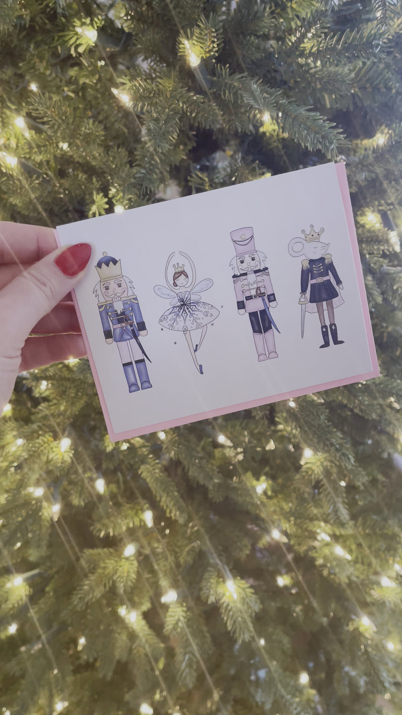 Enjoy the sweet nostalgia of Christmases past with this quirky, nutcracker-inspired holiday card! Made with premium quality paper and a modern twist of watercolour and pink, this classic card with make the season merrier! (Includes envelope.)