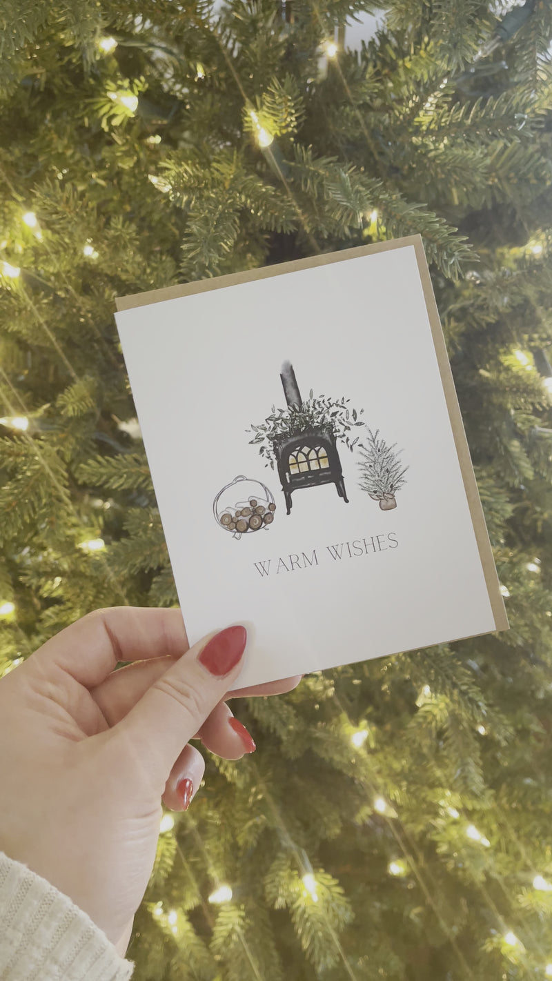 Adding warmth and cheer to your holiday greetings, this festive “Warm Wishes” card features a cozy fireplace with logs of wood that promise to add a cheerful winter ambiance. The perfect way to send all your happy wishes for the Christmas and Holiday season!Â